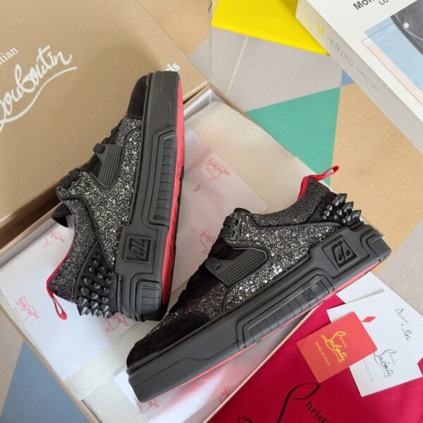 Christian Louboutin Astroloubi: Des sneakers de luxe mêlant le style rétro des années 90 au dynamisme sportif, avec les célèbres clous rouges et le lettra…