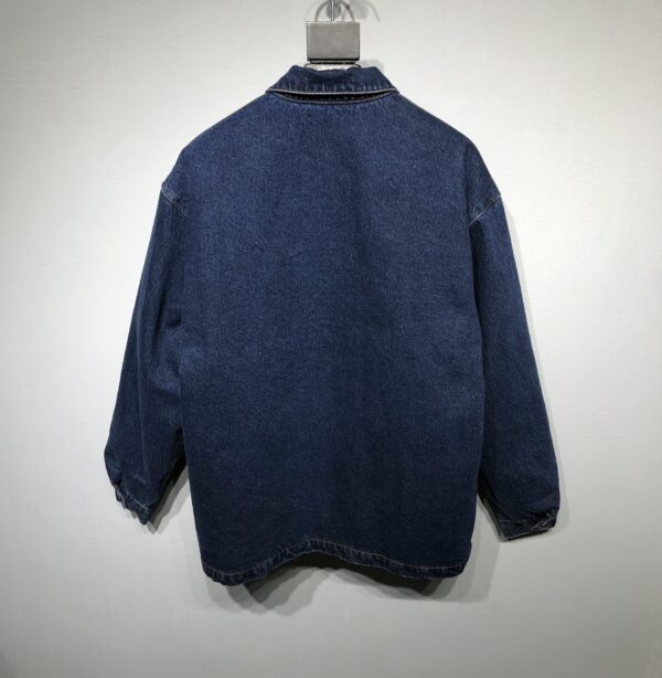 Découvrez la toute nouvelle veste en jean triangulaire de la collection PRADA pour l'automne-hiver 2023. Cette veste en dénim épais arbore l'emblématique…