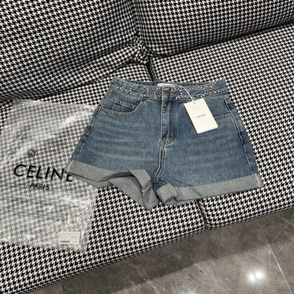 Celine | Shorts en Jean avec Clous en Forme d’Arc de Triomphe – Nouveauté du Début de l’Automne